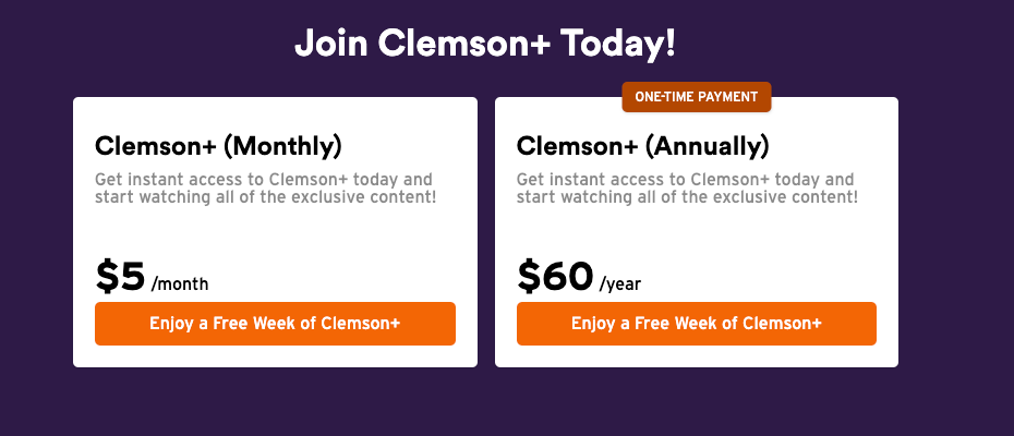 Let’s pretend I’m a diehard Clemson football fan. I love it. The games, the giant paw print on everything, how orange everything is. I graduated, I’m doing well in my career, and I come back for homecoming. As part of the 189,000 alumni, I feel a connection. I want to know what’s going on when I want to. That’s why I happily pay $60 a year to get complete awareness of what is happening in our program—all original content, all the time.